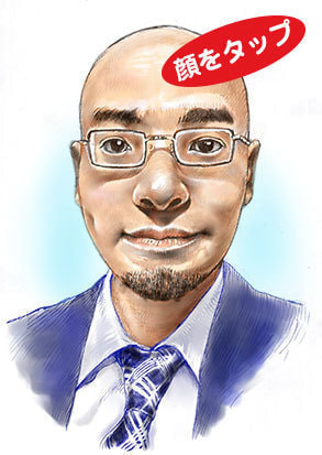 依頼者側の作業としてはスマホで撮った写真をメールで送るのみで、後はお任せでした。数日後お送りいただいた「 たたき台」の完成度が高くて驚きました。似顔絵の校正はまったく必要ありませんでした。後から出した名刺構成の要望にも、細かく応えていただき感謝しております。
